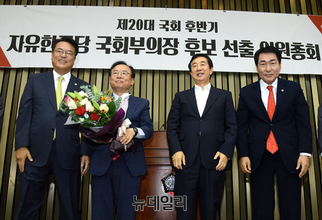 이주영 자유한국당 의원(5선)이 12일 오후 국회에서 열린 '제20대 국회 자유한국당 국회부의장 후보 선출 의원총회'에서 재석의원 101명의 투표참여 의원 중 과반 이상의 지지를 받아 부의장 후보로 결정됐다.