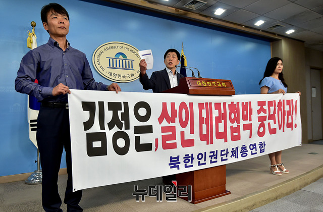 김정은, 살인테러 공갈협박 중단하라!