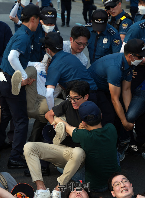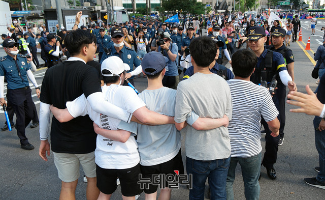 [포토] 온몸으로 퀴어퍼레이드 저지하는 시민들