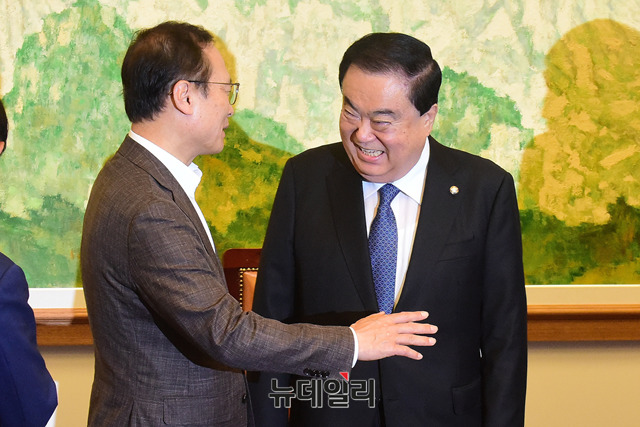 [포토] 대화 나누는 문희상 의장과 홍영표 원내대표