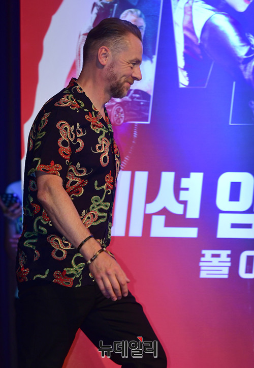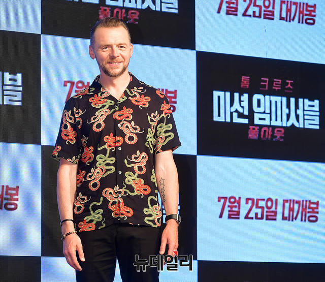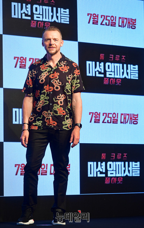 배우 사이먼 페그가 16일 오후 서울 송파구 롯데월드 호텔에서 열린 영화 '미션임파서블 폴아웃' 내한 기자간담회에서 포토타임을 갖고 있다.영화 '미션임파서블:폴아웃'은 최고 스파이 요원 애단 헌트와 IMF팀이 행한 선의의 선택이 최악의 결과로 돌아오면서 피할 수 없는 미션을 그리고 있다. 오는 25일 한국에서 전 세계 최초 개봉을 앞두고 있다.내한한 '미션임파서블:폴아웃' 배우와 감독은 이날 오후 6시부터 롯데월드타워 1층에서 진행되는 레드카펫 행사에서 한국 팬을 만날 예정이다.