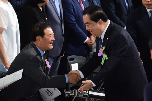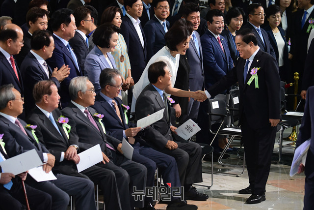 문희상 국회의장이 17일 오전 국회에서 열린 제70주년 제헌절 경축식에 참석하기 위해 입장하고 있다.