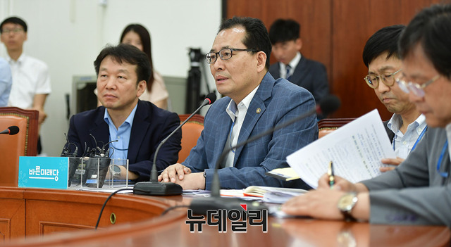 고형권 기획재정부 1차관이 17일 오후 국회 바른미래당 회의실에서 열린 바른미래당 2018 하반기 경제정책방향 관련 현안간담회에서 모두 발언을 하고 있다.