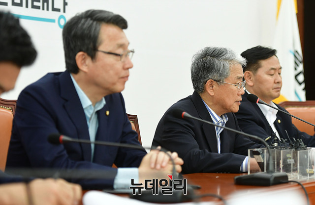 김동철 바른미래당 비대위원장이 17일 오후 국회 바른미래당 회의실에서 열린 2018 하반기 경제정책방향 관련 현안간담회에서 모두 발언을 하고 있다. 이날 간담회에는 고형권 기획재정부 1차관이 참석했다.