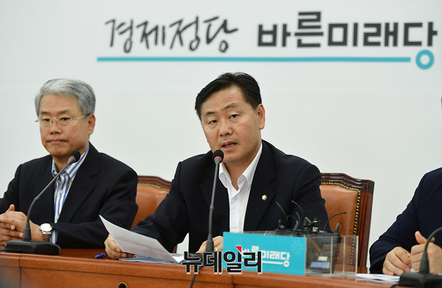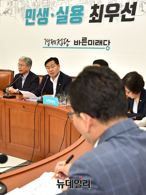 김관영 바른미래당 원내대표가 17일 오후 국회 바른미래당 회의실에서 열린 2018 하반기 경제정책방향 관련 현안간담회에서 모두 발언을 하고 있다. 이날 간담회에는 고형권 기획재정부 1차관이 참석했다.