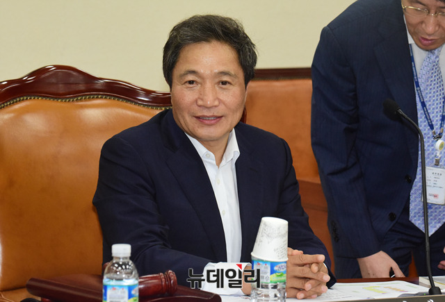 이학재 국회 정보위원장이 16일 오후 국회에서 열린 정보위 회의에 참석해 앉아 있다.