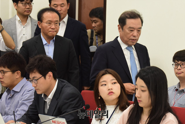 김병준 자유한국당 혁신비대위원장이 18일 오전 국회 당대표실에서 열린 기자회견에 참석하기 위해 입장하고 있다.