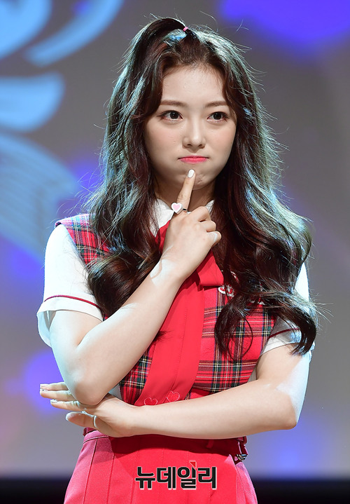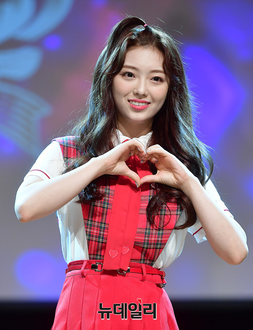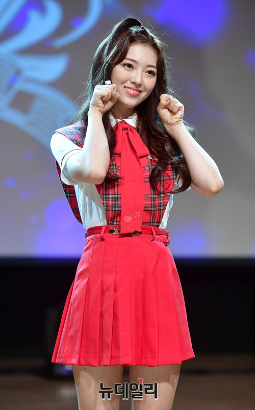 신인걸그룹 세러데이(Saturday) 멤버 하늘이 18일 오후 서울 강남구 일지아트홀에서 데뷔 쇼케이스에서 포토타임을 갖고 있다.