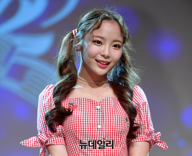 신인걸그룹 세러데이(Saturday) 멤버 초희가 18일 오후 서울 강남구 일지아트홀에서 데뷔 쇼케이스에서 포토타임을 갖고 있다.