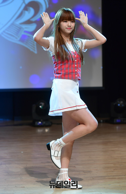 신인걸그룹 세러데이(Saturday) 멤버 아연이 18일 오후 서울 강남구 일지아트홀에서 데뷔 쇼케이스에서 포토타임을 갖고 있다.