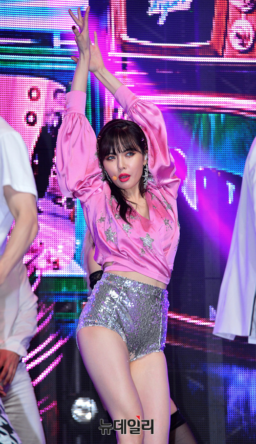 '트리플H(현아, 후이, 이던)' 현아가 18일 오후 서울 용산구 블루스퀘어 아이마켓홀에서 열린 두 번째 미니앨범 '레트로 퓨처리즘(REtro Futurism)' 발매 기념 쇼케이스에 참석해 신곡 무대를 선보이고 있다.레트로 퓨처리즘은 현재의 유행보다 예전의 것에서 새로운 멋을 찾아 표현하고자 하는 의미를 담았다. 경쾌한 리듬과 복고 콘셉이 특징이다. 타이틀곡 '레트로퓨처(RETRO FUTURE)' 포함 총 4곡이 수록 됐다. 음원은 오늘(18일) 오후 6시 공개된다.