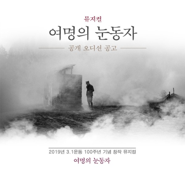 1991년 방영된 채시라, 최재성, 박상원 주연의 MBC 특별 드라마 '여명의 눈동자'가 창작뮤지컬로 내년 관객과 만난다.제작사 수키컴퍼니는 "뮤지컬 '여명의 눈동자'가 3.1운동 100주년 기념 공연으로 제작된다"라며 "내년 초연을 앞두고 공개 오디션을 진행한다"고 19일 밝혔다.8월 13일부터 디큐브아트센터에서 진행되는 이번 공개오디션에서는 조연 및 앙상블 배우를 선발한다. 만 18세 이상의 역량 있는 성인 남녀라면 누구나 지원할 수 있으며, 원서접수는 8월 5일까지다. 자세한 내용은 제작사인 수키컴퍼니 SNS를 참조하면 된다.'여명의 눈동자'는 김성종의 동명소설을 원작으로 드라마를 극화한 창작 뮤지컬이다. 드라마는 방영 당시 58.4%의 경이적인 시청률을 기록했으며, 압도적인 스케일과 탄탄한 서사로 최고의 걸작으로 꼽힌다.1년 5개월의 치밀한 사전 제작 기간을 거친 드라마 '여명의 눈동자'는 당시의 세밀한 소품 재현은 물론, 일제시대부터 해방 이후의 혼란기를 거쳐 한국 전쟁에 이르는 역사를 세밀하게 담아내 시대극으로 평가 받는 수작이다.현재 창작 뮤지컬 분야에서 가장 활발한 활동을 보이고 있는 노우성 연출을 비롯해 오필영 무대 디자이너, 조수현 영상디자이너, 원미솔 음악감독 등 실력파 창작진이 대거 참여한다.뮤지컬 '여명의 눈동자'는 2019년 2월 초 디큐브아트센터에서 공연될 예정이다.[사진=수키컴퍼니]