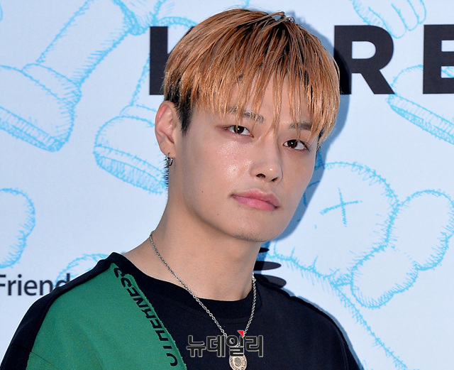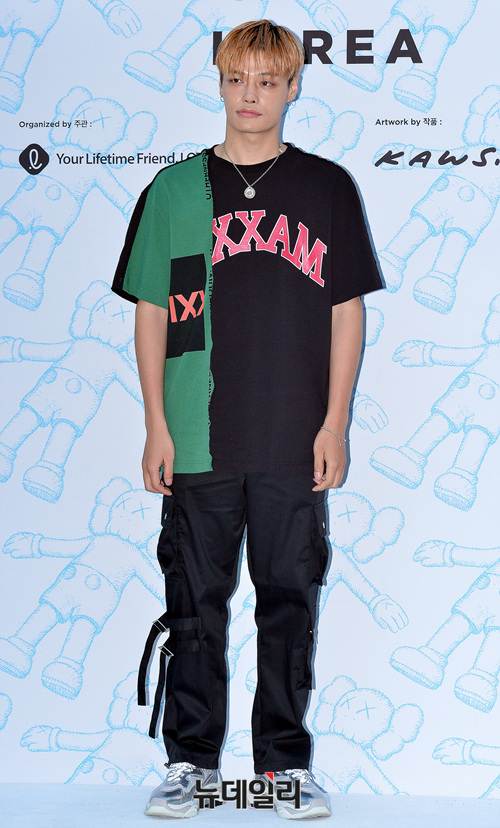 모델 정혁이 19일 오후 석촌호수에서 열린 '카우스 : 홀리데이(KAWS:HOLIDAY)' 프로젝트 기념 행사에 참석해 포즈를 취하고 있다.