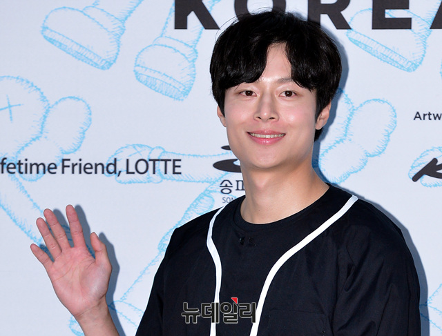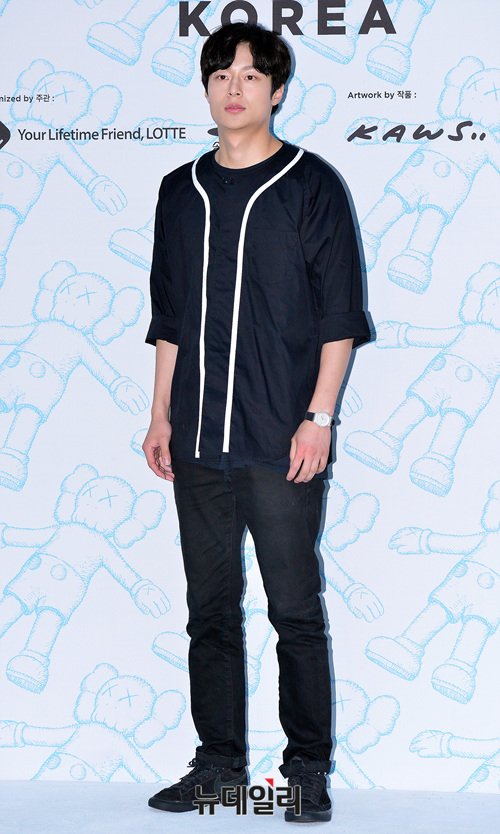 모델 김충재가 19일 오후 석촌호수에서 열린 '카우스 : 홀리데이(KAWS:HOLIDAY)' 프로젝트 기념 행사에 참석해 포즈를 취하고 있다.