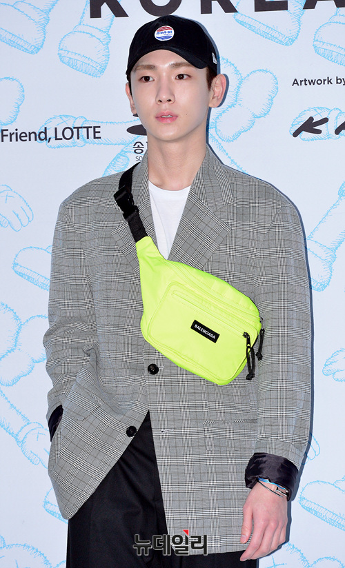 그룹 샤이니(SHINee) 키가 19일 오후 석촌호수에서 열린 '카우스 : 홀리데이(KAWS:HOLIDAY)' 프로젝트 기념 행사에 참석해 포즈를 취하고 있다.