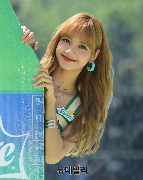 걸그룹 블랙핑크(지수, 제니, 로제, 리사) 리사가 21일 오전 서울 송파구 잠실운동장에서 열린 '워터밤 at 스프라이트 아일랜드' 오픈 행사에 참석해 포토타임을 갖고 있다.