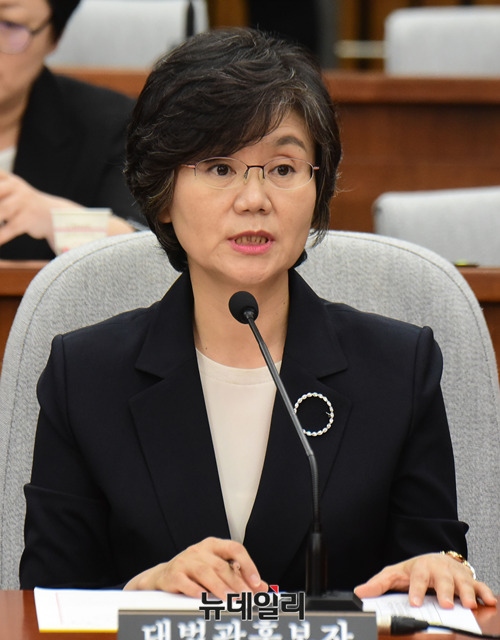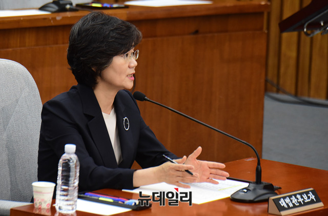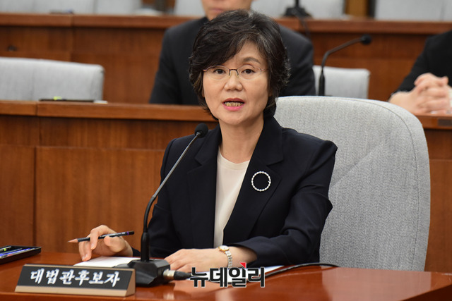 노정희 대법관 후보자가 24일 오전 국회에서 열린 인사청문회에서 위원들의 질문에 답하고 있다.