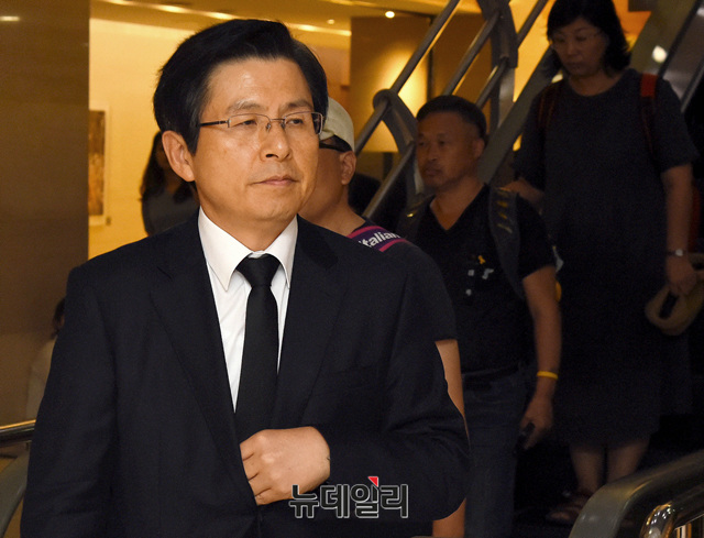 황교안 전 국무총리가 24일 오후 서울 마포구 신촌세브란스병원 장례식장에 마련된 노회찬 정의당 원내대표 빈소를 찾아 조문하고 있다. 노 원내대표는 앞서 지난 23일 서울 중구의 한 아파트에서 투신해 사망했다.
