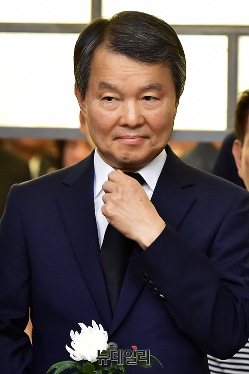 이진성 헌법재판소장이 24일 오후 서울 마포구 신촌세브란스병원 장례식장에 마련된 노회찬 정의당 원내대표 빈소를 찾아 조문하고 있다. 노 원내대표는 앞서 지난 23일 서울 중구의 한 아파트에서 투신해 사망했다.