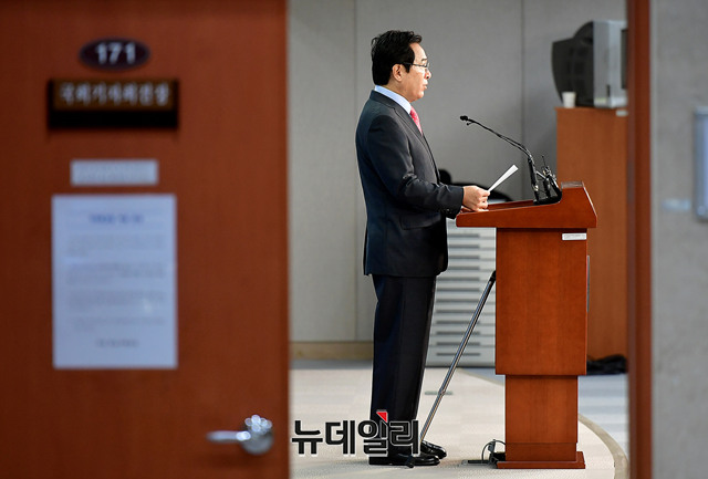 심재철 자유한국당 의원이 25일 오전 국회 정론관에서 현안 관련 브리핑을 갖고 "북한산 석탄을 국내에 반입한 것으로 의심되는 선박이 알려진 2척보다 더 많다"고 주장했다.