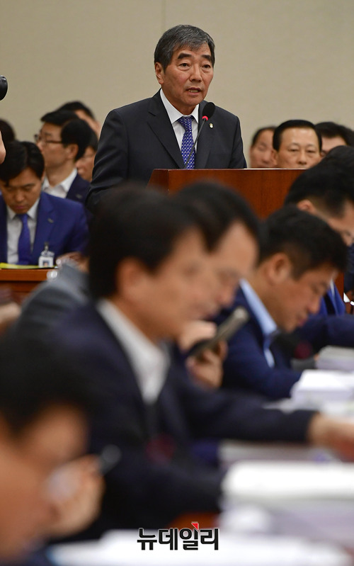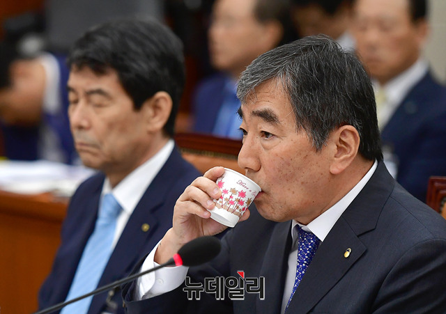 윤석헌 금융감독원장이 25일 오전 국회에서 열린 국회 정무위원회 전체회의에서 업무보고를 하고 있다.