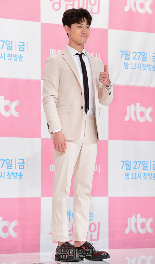배우 곽동연이 26일 오후 서울 영등포구 타임스퀘어에서 열린 드라마 '내 아이디는 강남미인' 제작발표회에 참석해 포즈를 취하고 있다. 곽동연은 주인공 미래에게 관심을 표하는 조교 연우영 역을 맡았다.