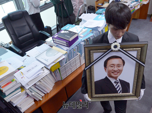 [포토] 의원회관 사무실 찾은 고 노회찬 의원 영정