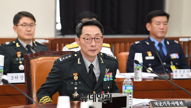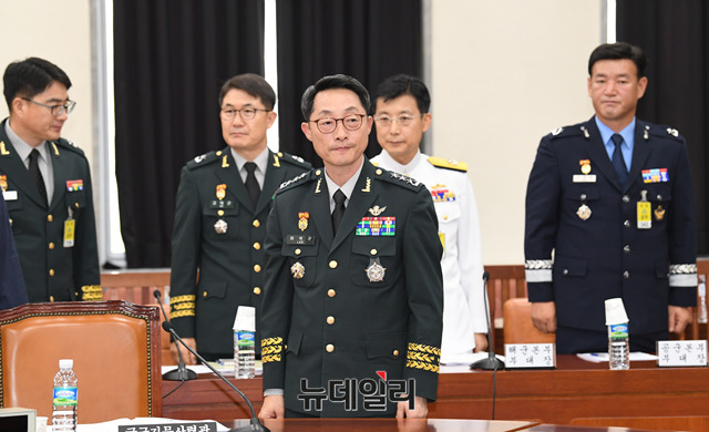 이석구 기무사령관 등 기무부대장들이 27일 오후 국회에서 열린 국회 정보위원회 전체회의에 출석해 있다.