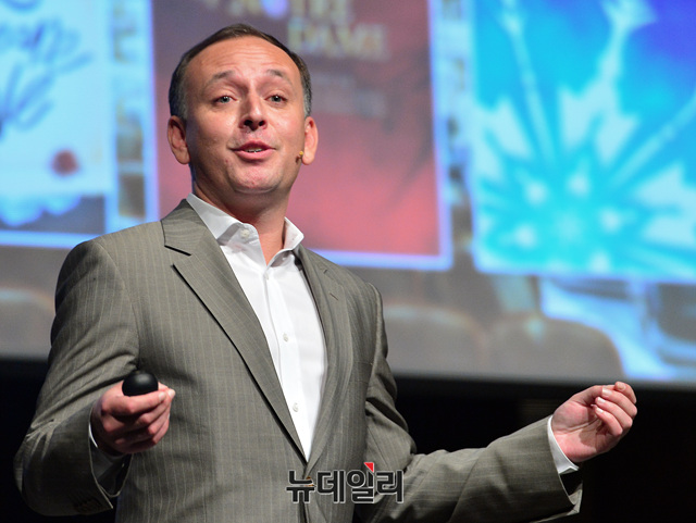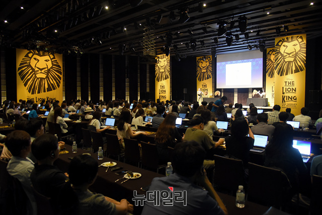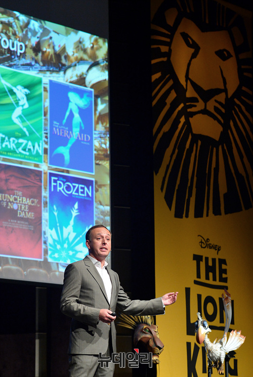 펠리페 감바(Philip Gamba) 월트디즈니(Walt Disney) 컴퍼니 프로덕션 인터내셔널 프로덕션 총괄이사가 30일 오전 서울 중구 웨스틴조선 호텔에서 열린 뮤지컬 '라이온킹(The Lion King)' 인터내셔널 투어 프레스 컨퍼런스에 참석해 인사말을 하고 있다.이날 펠리페 감바는 "아프리카 날씨 같은 한국에 와서 좋은 예감이 든다"며 "라이온 킹 무대는 배우가 동물 인형을 직접 조종하는 것을 보여주면서 관객의 상상력을 자극하는 방법을 썼다"고 말했다.'라이온킹'은 정글의 왕 무파사의 새끼 사자 심바가 아버지를 죽인 삼촌 스카와 싸워 이겨, 피폐해진 정글의 평화를 되찾고 왕이 된다는 이야기를 담았다. 월트디즈니 애니메이션이 원작이다.지난 1997년 11월 브로드웨이에서 초연한 이래 남극을 제외한 모든 대륙에서 공연됐다.오는 11월 대구 계명아트 센터 공연을 시작으로 2019년 1월 서울 예술의전당 무대에 오른다.