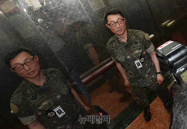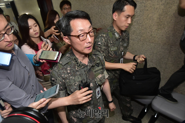 이석구 기무사령관이 1일 오전 국회를 찾아김성태 자유한국당 원내대표에게 기무사 관련 보고 후 회의장을 떠나고 있다.