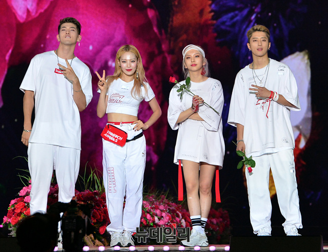 그룹 카드(KARD : 비엠, 제이셉, 전소민, 전지우)가 1일 오후 서울 구로구 고척스카이돔에서 열린 '케이스타 2018 코리아 뮤직 페스티벌(Korea Music Festival)'에 참석해 포즈를 취하고 있다.