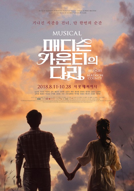 뮤지컬 '매디슨 카운티의 다리'의 감성 포스터가 공개됐다.'매디슨 카운티의 다리'는 미국 아이오와주의 한 시골 마을에서 평범한 삶을 살고 있던 이탈리아 출신 이민자 프란체스카와 사진 촬영을 위해 마을에 온 내셔널 지오그래픽 사진작가 로버트 킨케이드의 애절한 사랑을 그린다.이번에 공개된 포스터는 '프란체스카'와 '로버트'가 손을 잡고 해질녘 하늘을 바라보는 뒷 모습으로 이뤄질 수 없어 더욱 애틋한 두 사람의 사랑을 표현했다.특히, 감성적인 연출과 아름다운 무대 미학으로 극찬을 받았던 뮤지컬의 장점을 고스란히 녹인 장면과 색감으로 작품 속 감동을 그대로 담고 있다.1992년 발표된 로버트 제임스 월러의 동명 소설을 원작으로 하는 뮤지컬 '매디슨 카운티의 다리'는 '프란체스카'와 '로버트' 역에 각각 김선영·차지연, 박은태·강타(안칠현)가 맡아 번갈아 출연한다.8월 11일부터 10월 28일까지 샤롯데씨어터에서 공연된다.[사진=쇼노트]