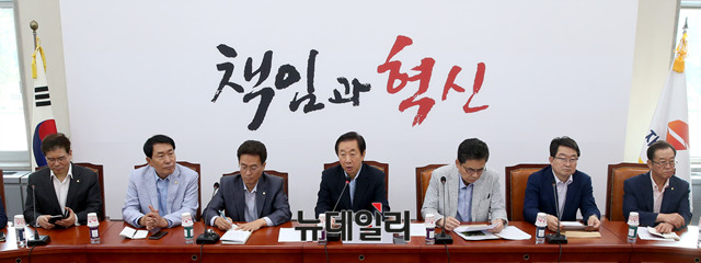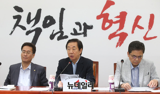 김성태 자유한국당 원내대표가 3일 오전 국회 당대회의실에서 열린 원내대책회의에서 모두발언을 하고 있다.