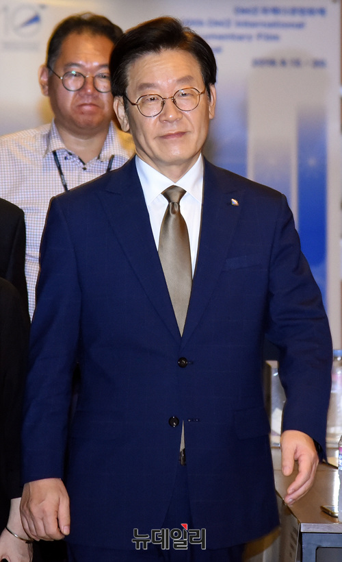 이재명 경기지사가 7일 오전 서울 종로구 서울역사박물관에서 열린 '제10회 DMZ 국제다큐영화제 기자회견'에 참석하고 있다.