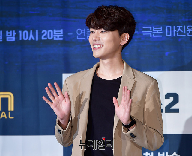 배우 김우석이 7일 오후 서울 영등포구 콘래드서울 호텔에서 열린 OCN 드라마 '보이스2(연출 이승영, 극본 마진원)' 제작보고회에서 포토타임을 갖고 있다.