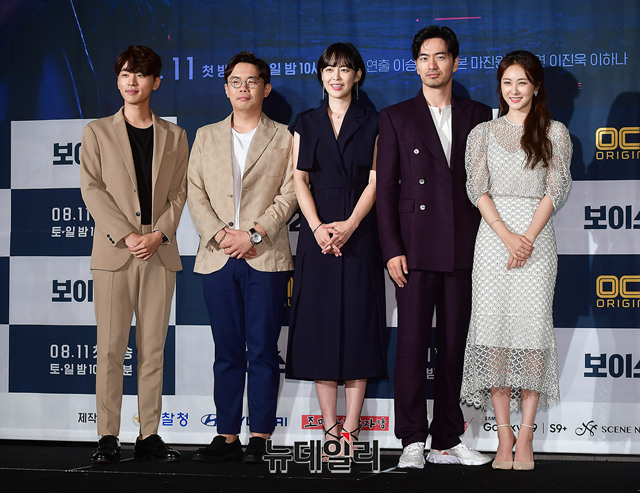 출연배우 김우석, 안세하, 이하나, 이진욱, 손은서(왼쪽부터)가 7일 오후 서울 영등포구 콘래드서울 호텔에서 열린 OCN 드라마 '보이스2(연출 이승영, 극본 마진원)' 제작보고회에서 포토타임을 갖고 있다.'보이스2'는 범죄 현장의 골든타임을 사수하는 112 신고센터 대원들의 치열한 기록을 그린 소리 추격 스릴러 드라마로 오는 11일부터 매주 토, 일 밤 10시 20분에 방영된다.배우 이진욱, 이하나, 손은서, 안세하, 김우석 등이 출연한다.