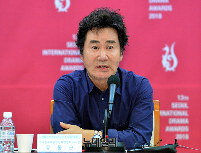 서울드라마어워즈 2018의 심사위원장을 맡은 배우 유동근이 7일 오후 서울 중구 한국프레스센터에서 열린 기자간담회에 참석해 심사 총평을 하고 있다.