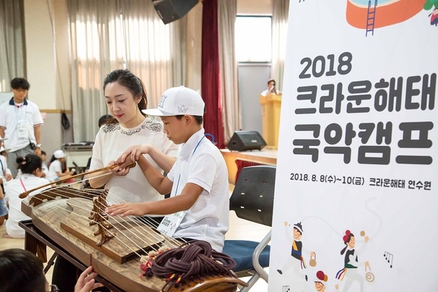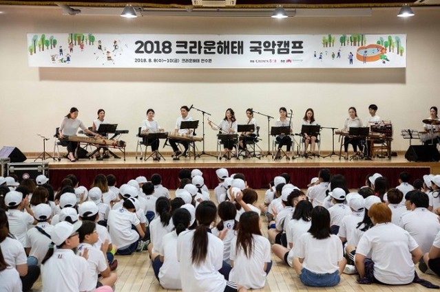 과자로 얼굴을 만들고, 아쟁도 배워보는 특별한 여름방학이 시작된다.한국메세나협회(회장 김영호)와 크라운-해태제과(회장 윤영달)는 8~10일 2박 3일간 경기도 양주 크라운해태 연수원에서 어린이 여름방학 문화체험 프로그램 '크라운해태 K-arts 국악캠프'(이하 국악캠프)를 연다.국악캠프는 국악, 문화예술 등을 통해 어린이들에게 특별한 여름방학 추억을 만들어주기 위해 2014년 처음 개최했다. 문화소외지역 어린이들을 초청해 악기체험, 국악뮤지컬 관람, 전통연희 체험, 미술 등 국악 뿐 아니라 다양한 콘텐츠들을 제공한다.올해는 서울, 인천, 양주, 구미, 대구 등 5개 지역 8개 지역아동센터에서 135명의 어린이를 국악캠프에 초청했다. 국악 체험에 앞서 과자로 미술작품을 만들어보는 '뚝딱뚝딱, 과자로 만드는 얼굴'로 캠프의 문을 열었다.