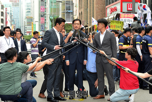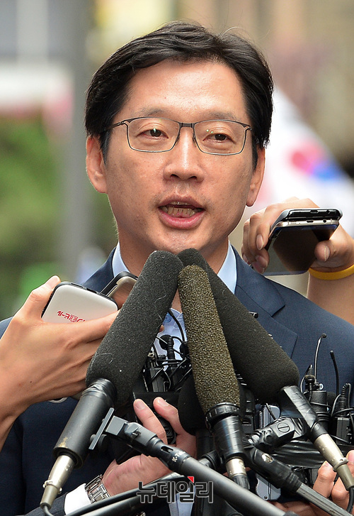 김경수 경남지사가 9일 오전 서울 서초구 '드루킹 댓글 조작 사건' 진상규명을 위한 특별검사 사무실에 재소환, 질문에 답하고 있다.