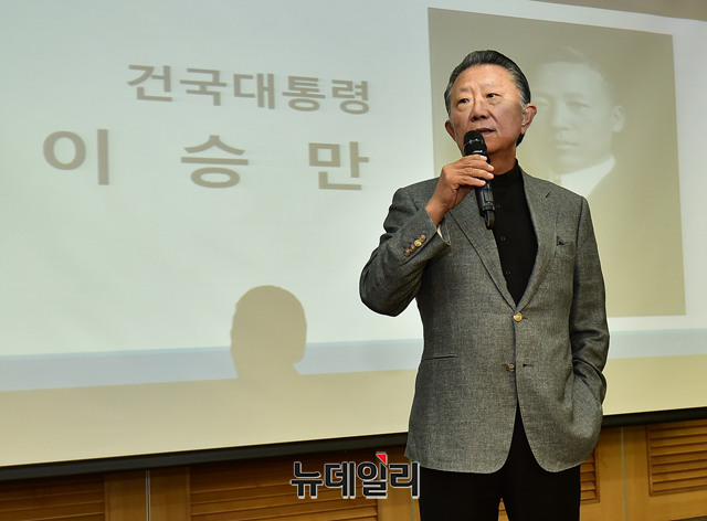 신철식 이승만건국대통령기념사업회장이 9일 오전 국회 의원회관에서 열린 '건국의 아버지 이승만의 재조명' 초청강연에서 강연하고 있다.