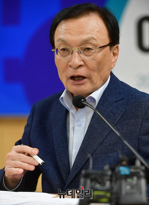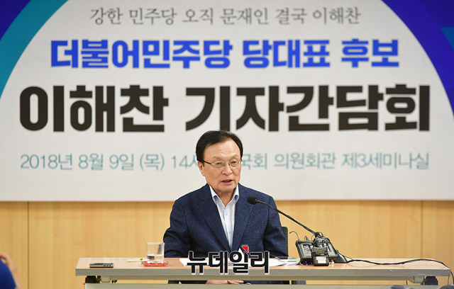 이해찬 더불어민주당 당대표 후보가 9일 오후 국회 의원회관에서 열린 기자간담회에서 발언하고 있다.