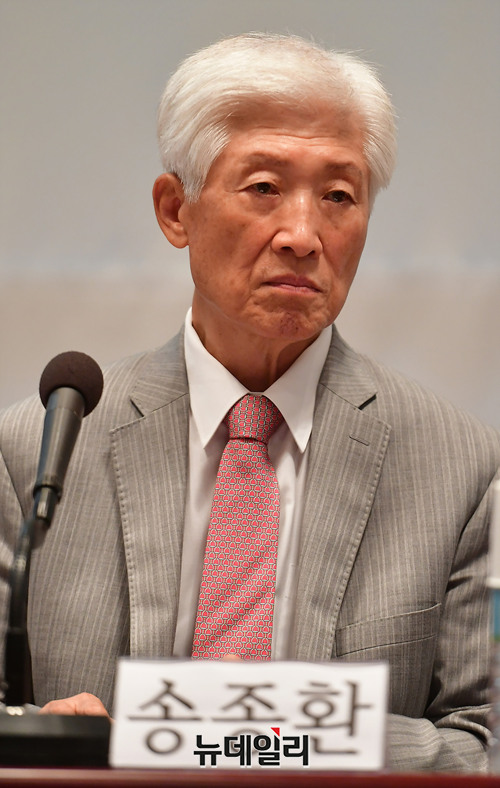 송종환 경남대 석좌교수가 13일 오후 서울 중구 한국프레스센터에서 열린 '박정희 시대의 남북대화' 월례 포럼에 참석해 자리하고 있다.