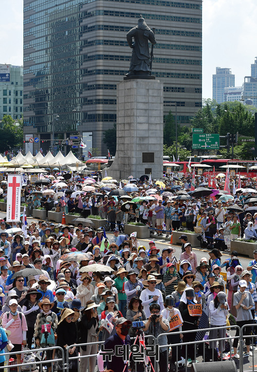 3부로 나눠 진행된 이날 행사는 구국기도회로 시작했다. 이어 건국70주년 기념식과 가두행진으로 행사를 이어갔다. 이들은 △대한민국 건국 정체성 훼손 △자유민주주의 시장경제 역행 △거짓 남북평화 정책 △한미동맹 파괴 안보정책 규탄 △국가인권정책 기본계획 △원전문제 및 난민정책 등을 규탄했다.