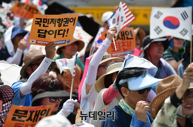 오전부터 광화문 광장 일대에서 진행된 이날 행사는 △대한민국 건국 정체성 훼손 △자유민주주의 시장경제 역행 △거짓 남북평화 정책 △한미동맹 파괴 안보정책 규탄 △국가인권정책 기본계획 △원전문제 및 난민정책 등을 규탄했다.