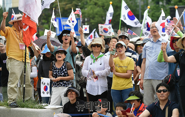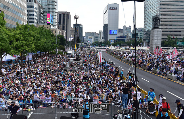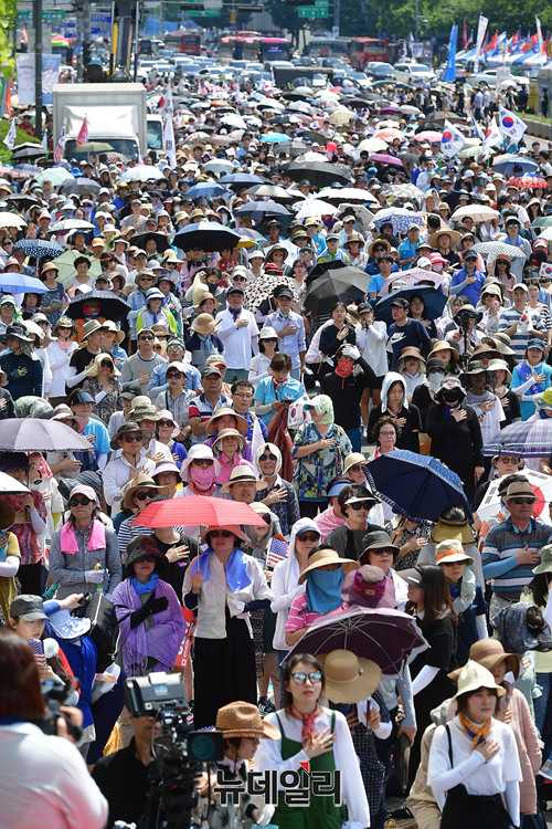 3부로 나눠 진행된 이날 행사는 구국기도회로 시작했다. 이어 건국70주년 기념식과 가두행진으로 행사를 이어갔다. 이들은 △대한민국 건국 정체성 훼손 △자유민주주의 시장경제 역행 △거짓 남북평화 정책 △한미동맹 파괴 안보정책 규탄 △국가인권정책 기본계획 △원전문제 및 난민정책 등을 규탄했다.