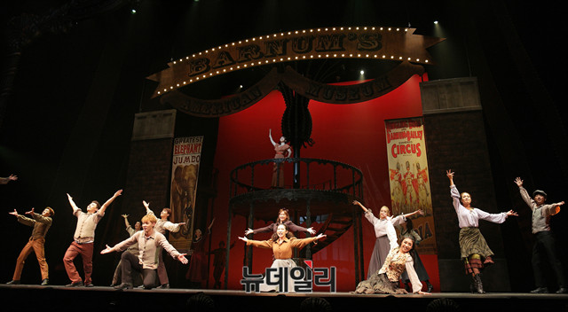 뮤지컬 '바넘: 위대한 쇼맨'은 서커스를 지상 최대의 엔터테인먼트로 만들어 낸 피니어스 테일러 바넘의 생애를 그린 작품이다. 오는 10월 28일까지 충무아트센터 대극장에서 공연된다.