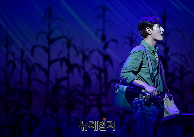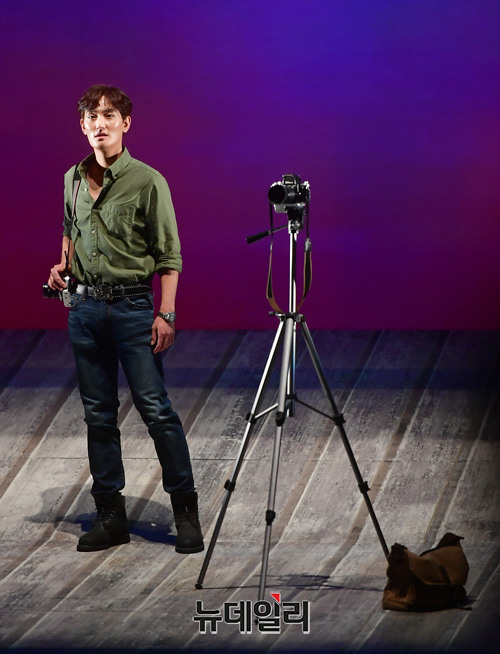 배우 강타가 16일 오후 서울 송파구 샤롯데씨어터에서 열린 뮤지컬 '매디슨 카운티의 다리' 프레스콜에서 하이라이트 장면을 시연하고 있다.