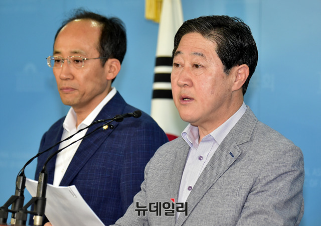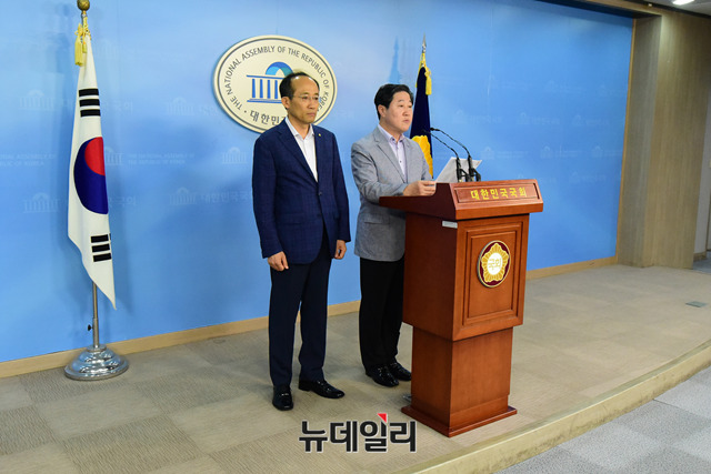 유기준 자유한국당 북한산 석탄수입 의혹규명 특별위원장이 17일 오후 국회 정론관에서 북한석탄특위 자료 제출 요구관련 기자회견을 하고 있다.