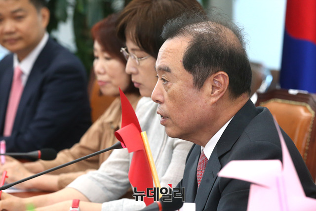 김병준 자유한국당 비대위원장이 17일 오후 국회에서 열린 여성청년특별위원회 1차 회의에서 모두발언을 하고 있다.