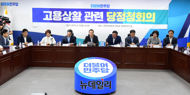 홍영표 더불어민주당 원내대표가 19일 오후 국회 의원회관에서 열린 '고용 쇼크' 대책 관련 긴급 당-정-청 회의에 참석해 모두발언을 하고 있다.